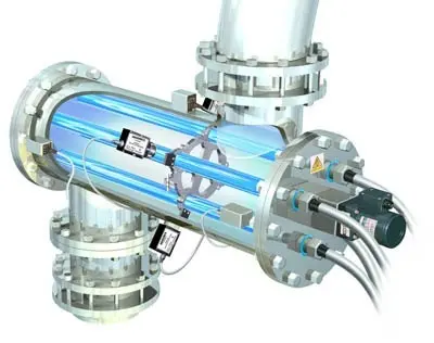 UV germicidal lamps emitting at 254 nm inactivate bacteria and some viruses in the water stream. UV reactors are positioned after carbon beds or storage tanks to control microbial growth. Although UV does not remove endotoxins, it reduces microbial proliferation in distribution loops.